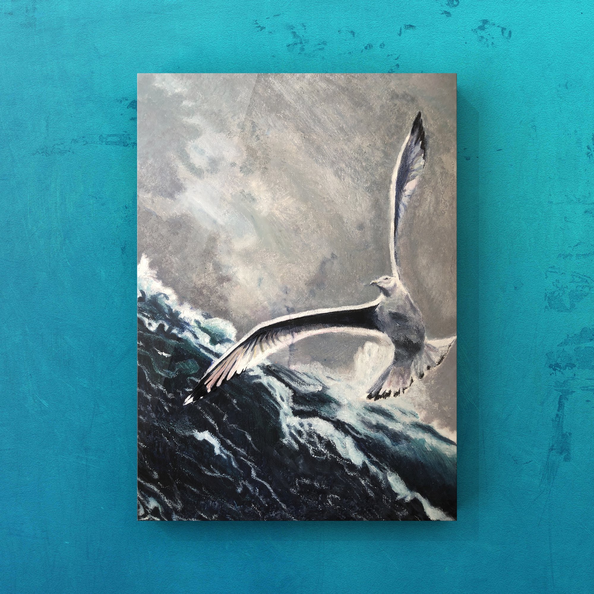 "I was interested in a composition with implied movement in different directions and angles. The lightness of the gull contrasts against the weight of the waves."